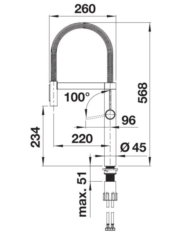 Klasikinis čiaupas su elegantišku dizainu ir pusiau profesionaliu funkcionalumu; aukšta arka ir lanksti metalinė žarna, užtikrinanti optimalią judėjimo laisvę; dviejų srovių dušas: lengvas perjungimas tarp skaidrios ir galingos purškimo srovės maksimaliam funkcionalumui; patogus žarnos užrakinimas dėl paslėpto magnetinio laikiklio; energijos taupymas