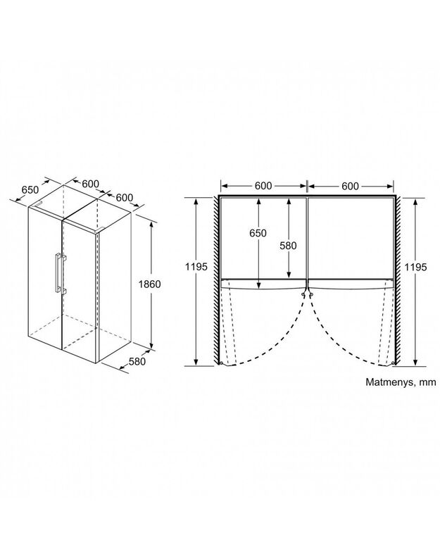 - Prietaiso matmenys (AxPxG): 186 x 60 x 65 cm