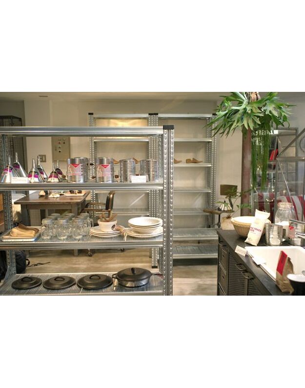 Stelažo lentynos plotis 135 cm. Vienos lentynos tolygi apkrova iki 185 kg. Lengvai surenkami stelažai.