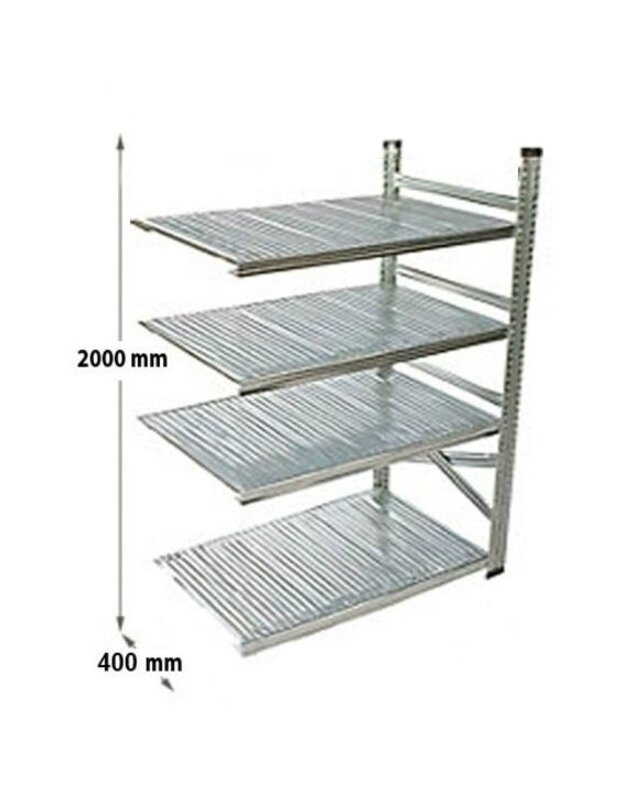 Priedą sudaro: 4 lentynų 200 cm aukščio ir 180 cm pločio stelažo priedas. Lentynų gylis 40 cm. Naudojamas stelažui praplėsti, panaudojant vieną ar daugiau papildomų komplektų. Vienos lentynos tolygi apkrova iki 140 kg.